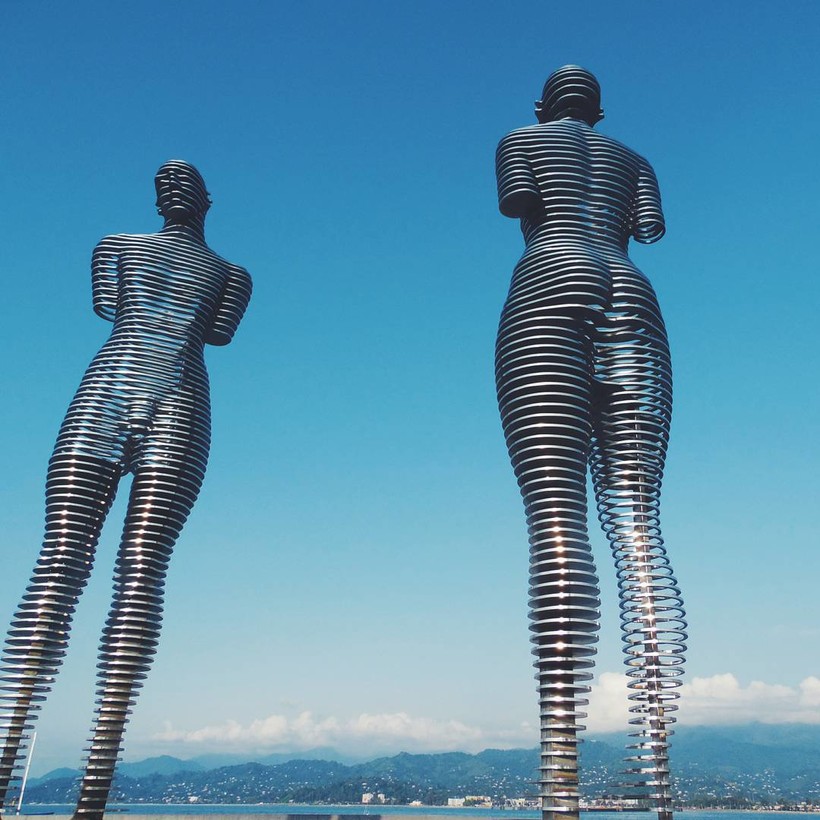 «Мужчина и женщина» — это 8-метровые движущиеся стальные скульптуры, созданные грузинским скульптором Тамарой Квеситадзе. Расположенные в приморском городе Батуми фигуры представляют собой азербайджанца-мусульманина Али хана и грузинскую княжну Нино — героев знаменитого романа 1937 года азербайджанского писателя Курбана Саида. Трагическая история любви заканчивается расставанием влюбленных из-за вторжения Советской России.