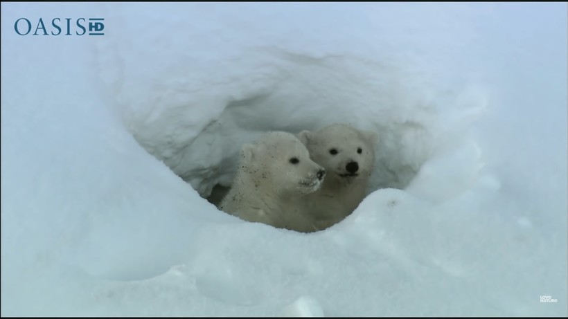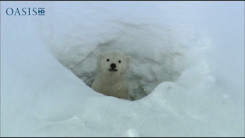 Эта семья белых медведей живет в темноте уже 3 месяца. Но пришло время покидать пещеру. Мама медведица прорывает лапами ход в снежной пещере, и медвежата впервые видят солнечный свет. Им не терпится выбраться на волю и очутиться на свежем воздухе после долгого пребывания в темном месте. Самый старший медвежонок не может ждать и первым вылезает из логова. Он видит красивый окружающий мир и синее небо в первый раз. Два его любопытных брата лезут за ним. Они видят много льда и снега, а также мир, полный приключений.