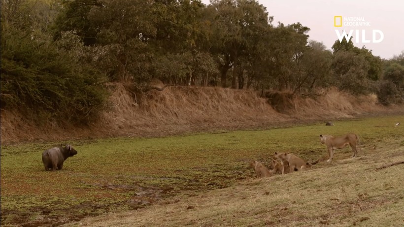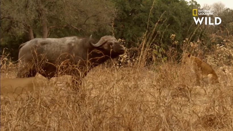 Голодные львицы заприметили буйволов, которые мирно шли вдалеке. Один из буйволов немного хромал, что выдало в нем слабость и хорошую добычу для львиц. Хищницы начали преследовать группу буйволов, а когда выбранная жертва отстала от стада, львицы начали окружать копытное. Буйвол вертелся как юла, чтобы отгонять больших кошек своими рогами. Он вырвался из круга и побежал. Львицы преследовали его, кидались ему на ноги и спину, впивались в него когтями. Голодные хищницы брали количеством, шансы не были равны. тем не менее буйвол — это сильное и выносливое животное, он не давал львицам повалить себя на землю, а продолжал бежать из последних сил.