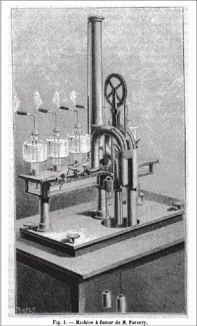 В Викторианскую эпоху курение было очень модным и стало неотъемлемой частью жизни аристократии. Разрешены были опиаты, и в каждом доме были целые коллекции табака. Что же делали салоны, пабы и прочие заведения, где курильщиков было мало? Они покупали вот такие машины, способные напускать целые облака табачного дыма, через которые ничего не было видно и которые дурно пахли.