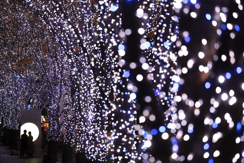 Столица Японии создает жителям новогоднее настроение аллеями деревьев, наряженных тысячами огней.
