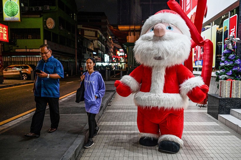 На улицах столицы Малайзии можно встретить вот такого огромного рождественского персонажа. Главный герой праздника расхаживает по дорогам города Куала-Лумпур в своем неизменном красном костюме и поздравляет прохожих.
