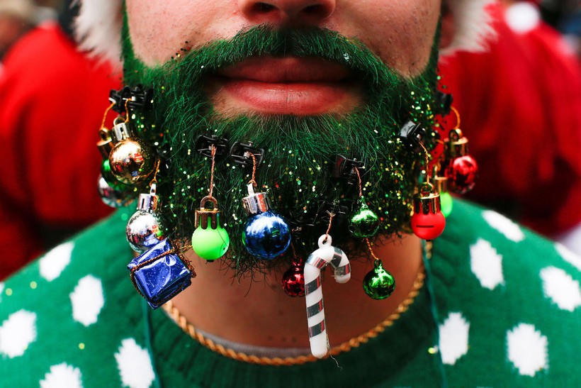В Нью-Йорке прямо на Таймс-сквер толпы людей собираются, чтобы показать свои оригинальные рождественские наряды.