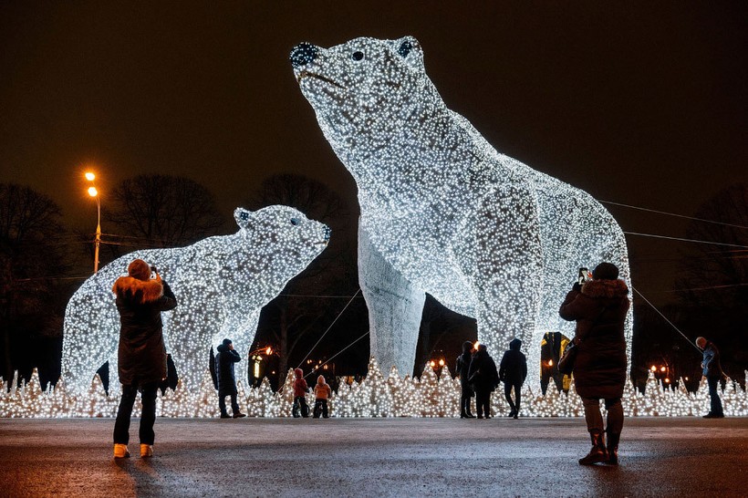 Столица России тоже удивляет жителей и гостей города. Огромные светящиеся фигуры животных украшают парк Горького в Москве.