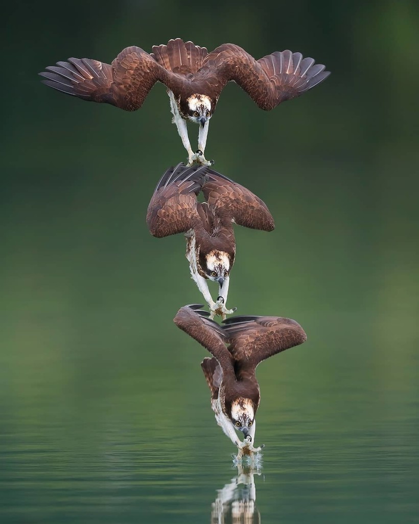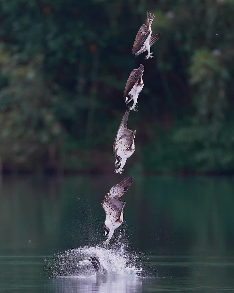Фотограф Чен Ченгуан прославился благодаря своим потрясающим снимкам птиц, которыми он делится в Инстаграме. Особенно поразительными являются его хронофотографии, демонстрирующие охоту скопы поэтапно. Хронофотография, ставшая популярной в середине 19 столетия, представляет собой технику, в которой движение фиксируется в нескольких кадрах. Затем эти кадры выкладываются в строгой очередности, либо помещаются в один кадр для демонстрации динамики. Эта техника является предшественницей анимации и кинематографии и первоначально использовалась учеными для изучения объектов в движении.