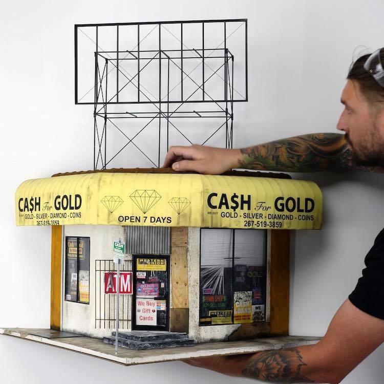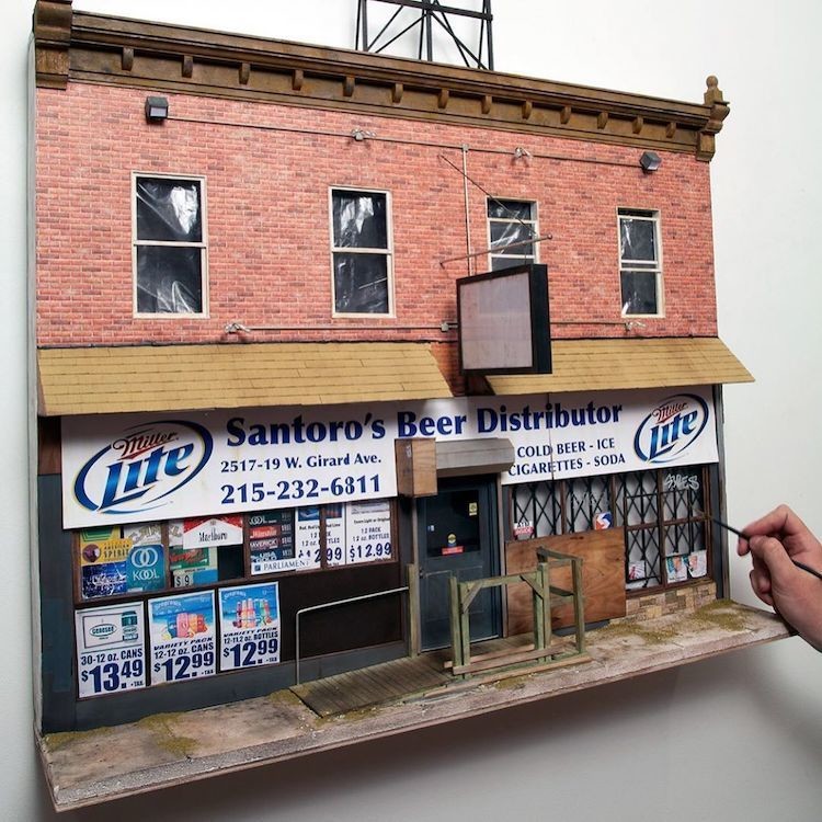Художник из Филадельфии Дрю Лешко создает скульптурный архив городской архитектуры в потрясающих детальных моделях. Работая в основном с бумагой и деревом, Лешко с любовью и заботой творит невероятные миниатюры, чтобы сохранить историю самых мрачных районов Филадельфии. От местных дайв-баров до ломбардов и магазинов — каждое коммерческое пространство превращается в произведение искусства, полное ностальгии.
