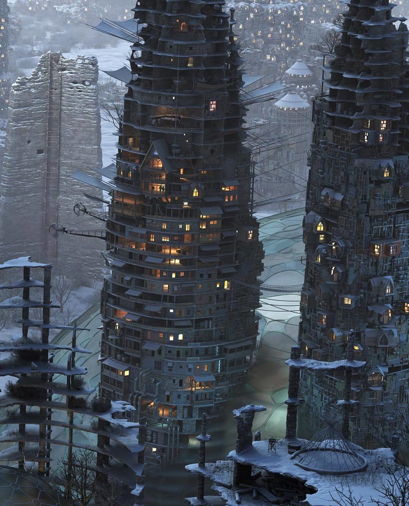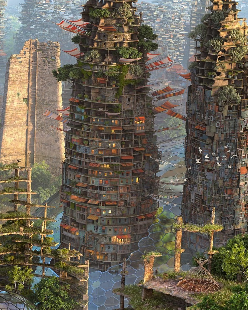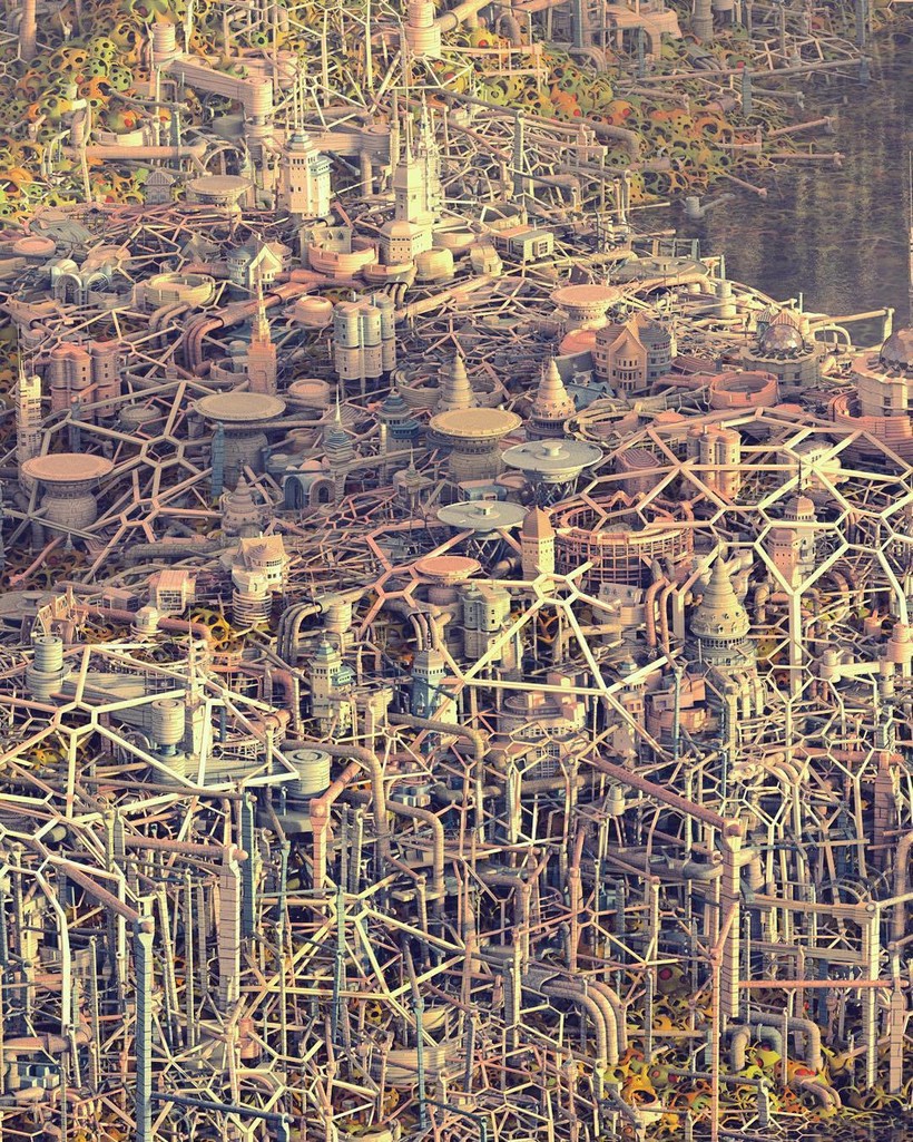 Канадский художник Мэтью Борретт творит воображаемые городские пейзажи, вдохновленные любовью к архитектуре и миром фантазий. Художник говорит, что не разместил на своих картинках людей специально, чтобы любой человек мог запросто представить себя, живущим в этой потрясающей вселенной.