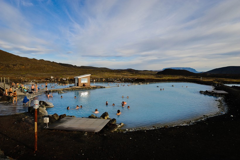 Природные ванны расположены в северо-восточной Исландии, всего в 65 милях к югу от Северного полярного круга. Озеро Муватн формировалось на протяжении многих лет при помощи повторных извержений вулканов и сейсмической активности.