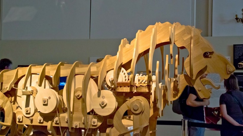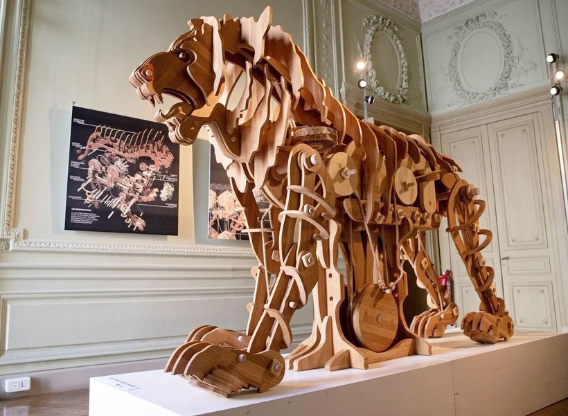 Механический подарок предназначался королю Франции Франциску I. По задумке инженера, лев, выполненный из деревянных деталей, мог ходить, вилять хвостом, нести в пасти цветы, которые он должен был положить к ногам короля. Размеры у механического хищника были соответствующие — 2 метра в высоту и 3 метра в длину. По меркам Средневековья это был просто невероятный подарок, который, безусловно, поразил короля. Лев был сделан, но что в итоге стало с оригинальным подарком, никому не известно. И вот итальянские инженеры и по совместительству поклонники Леонардо решили вернуть к жизни одно из его произведений.