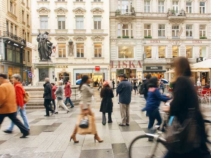 В австрийской столице этот показатель составляет 329 человек. На фото одна из центральных улиц Вены ― Грабен.