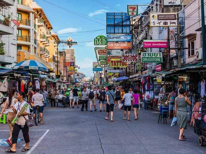 Бангкок недалеко ушел от Мюнхена: тут 229 путешественников на 100 жителей. Стоит взглянуть на самую популярную и самую дешевую улицу города Каосан Роуд, чтобы понять, сколько людей вы встретите в тайской столице.