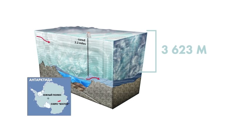 Одно из удивительных явлений, которые прячутся под ледяным покровом, это озеро Восток. Оно было обнаружено российским учеными еще в 90-х годах 20 века. Размер озера составляет около 15 000 км², а глубина — 1 200 м. Водоем скрыт под гигантским слоем льда в 3 623 м. Температура на поверхности озера почти -90 градусов, при этом лед находится под высоким давлением, а солнечный свет вовсе отсутствует. Из-за этого исследователи не планировали отыскать хоть какие-то признаки жизни, но были удивлены, обнаружив там микроорганизмы. Они развивались в полной изоляции от современных форм жизни, поэтому не похожи ни на один известный микроорганизм. Восток — это не единственное подледное озер в Антарктиде. Их количество может достигать 400.