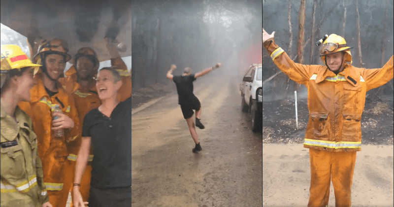 Женщина бежит прямо в огонь, чтобы спасти коалу. Она укутала испуганное животное в свою рубашку.