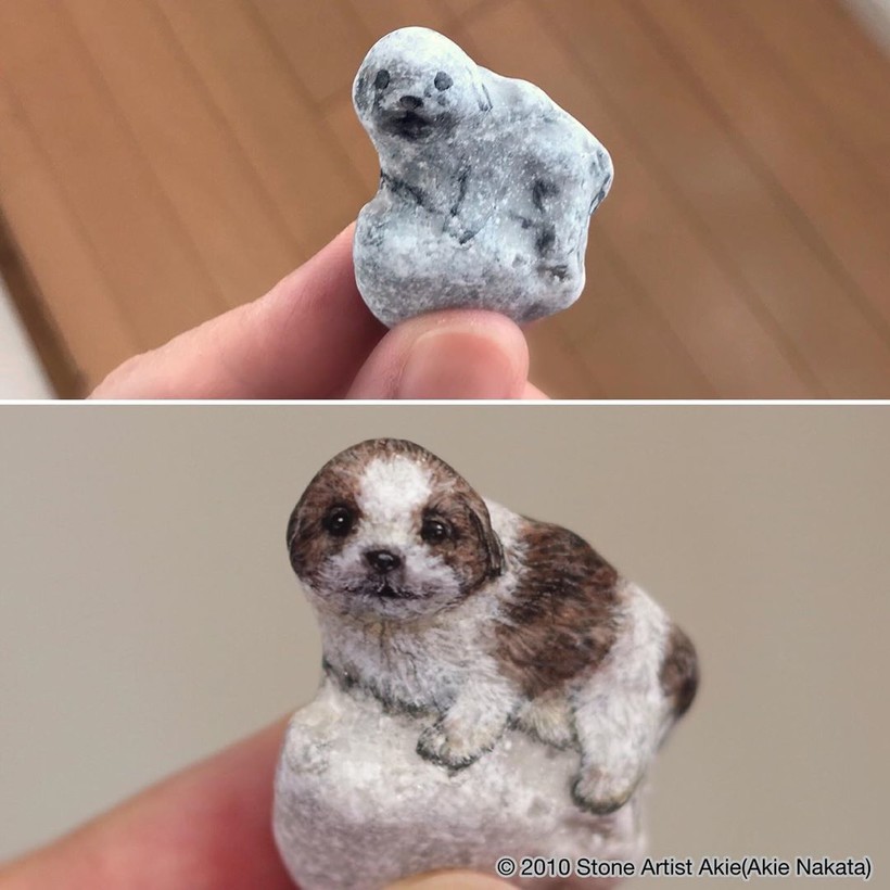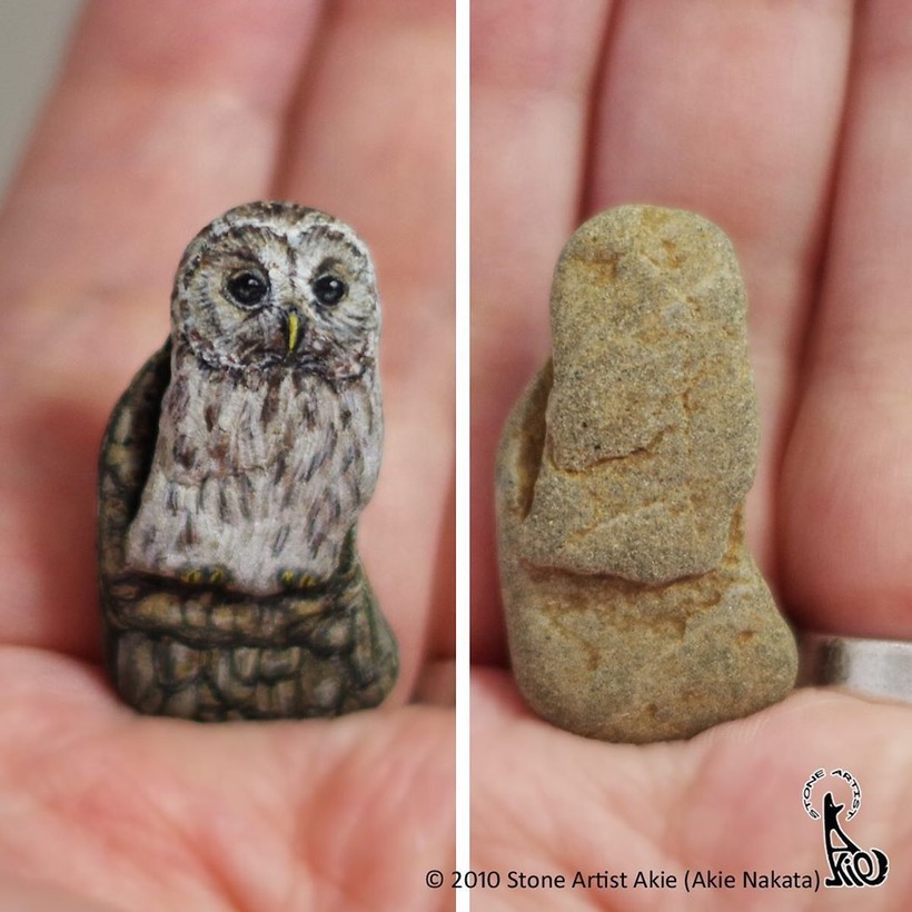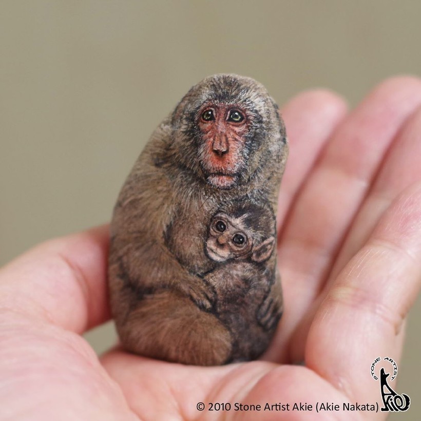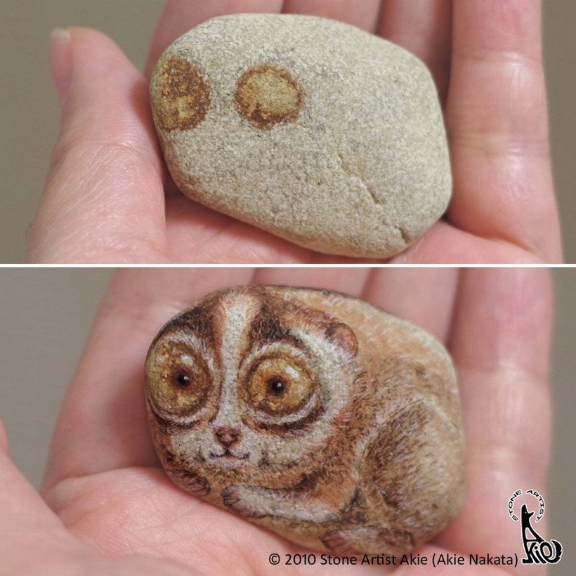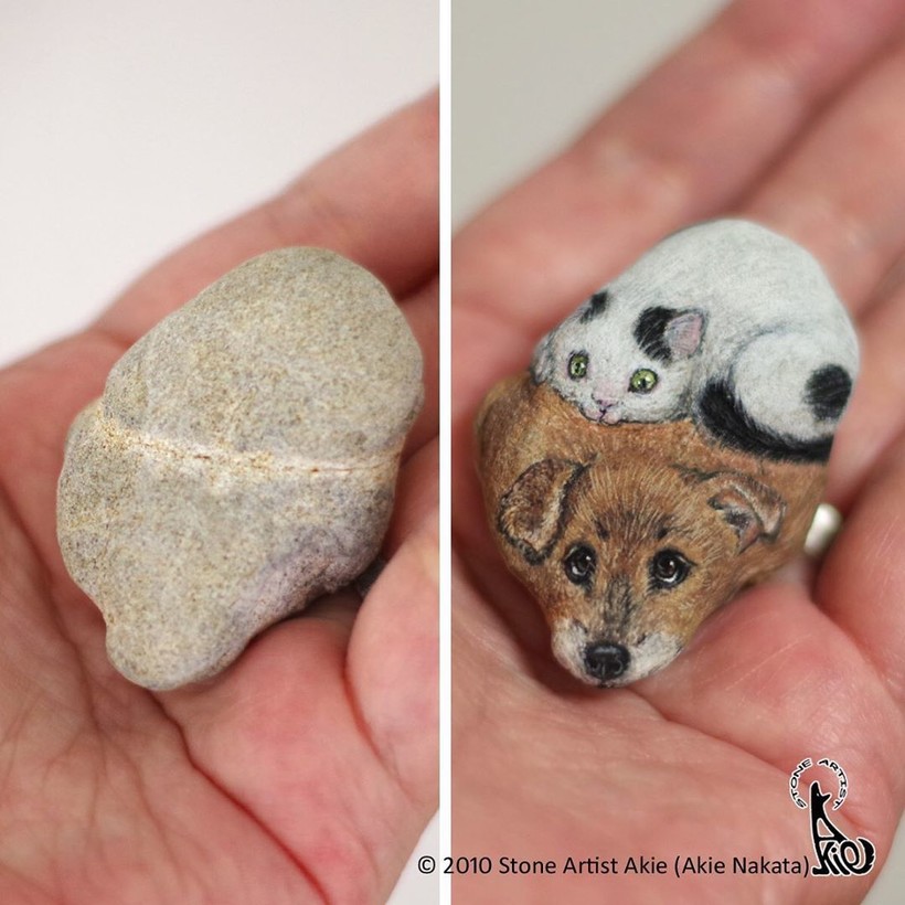 Аки Наката — уникальная художница из Японии, отличающаяся необыкновенным восприятием окружающего мира. В то время как большинство из нас в камне видит лишь камень, Аки видит в этом безжизненном объекте его безграничный потенциал. Уже почти десять лет она подбирает обычные камни и превращает их в нечто волшебное, используя лишь краску и свою фантазию. В ее умелых руках эти скучные на первый взгляд предметы становятся реалистичными животными, умещающимися на ладони.