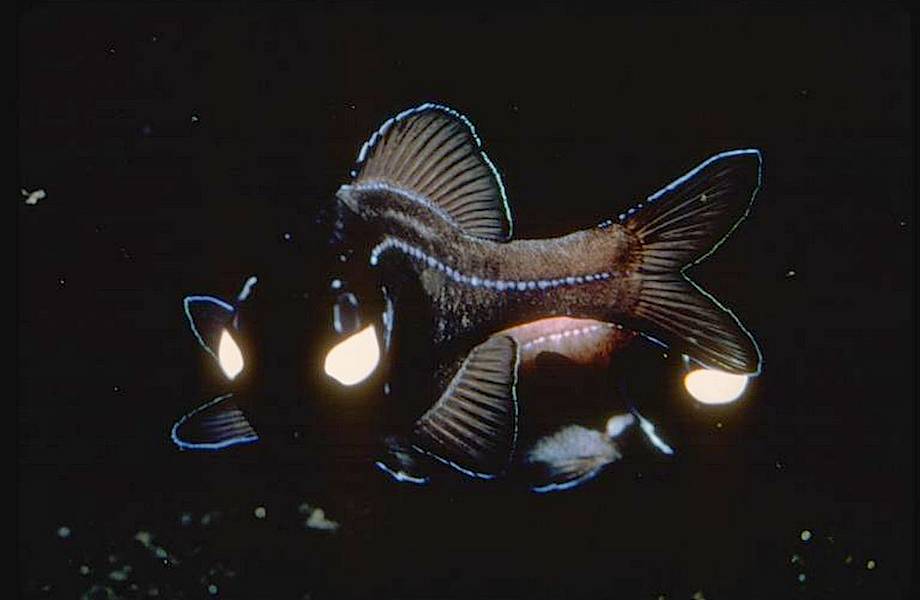 Стая этих небольших рыбок в ночном водоеме может внушить ужас любому, кто не знаком с этими созданиями. Фонареглазы настолько необычны, что производят впечатление каких-то электронных устройств, созданных человеком. На самом же деле это творение природы, правда, весьма оригинальное.