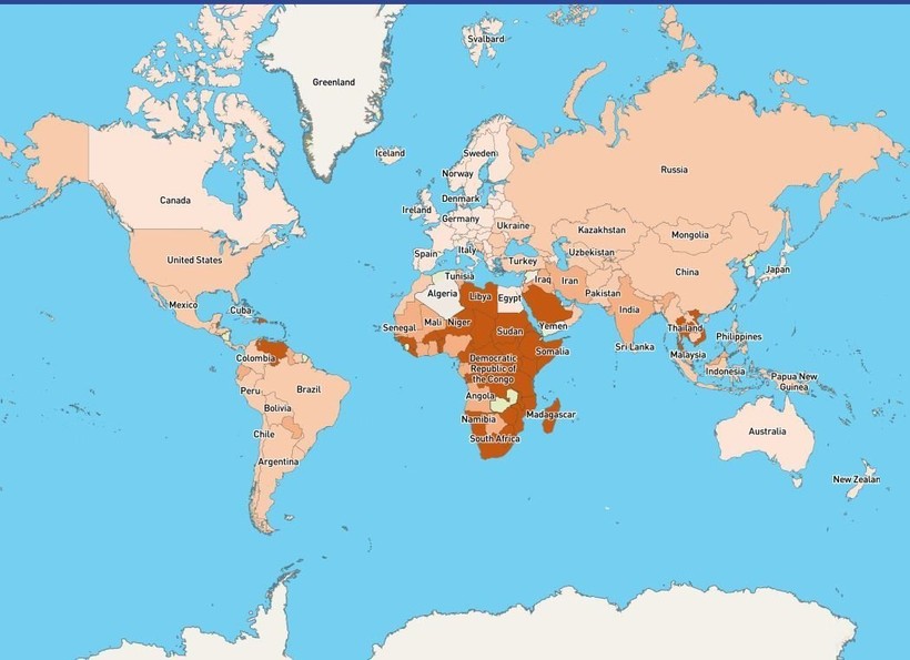 В области здоровья и медицинского обслуживания также имеются свои лидеры. Зеленый цвет обозначает низкую тревожность в плане состояния здоровья туристов, желтый — это средний риск и так по нарастающей до красного, которым отмечены критически опасные точки заражения инфекциями. Фиолетовый цвет нанесен на государства, имеющие переменные уровни опасности. Так, по частоте заболеваемости лидируют страны Африки, а меньше всего вы рискуете заболеть в Европе, США, Канаде, Австралии и в Японии.