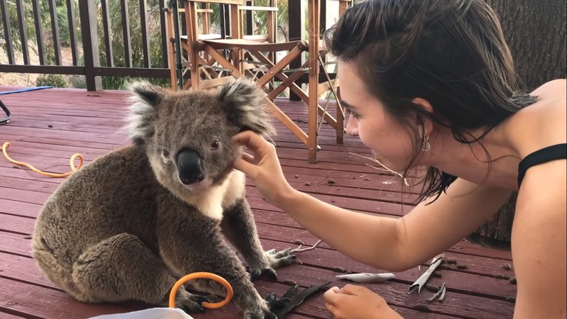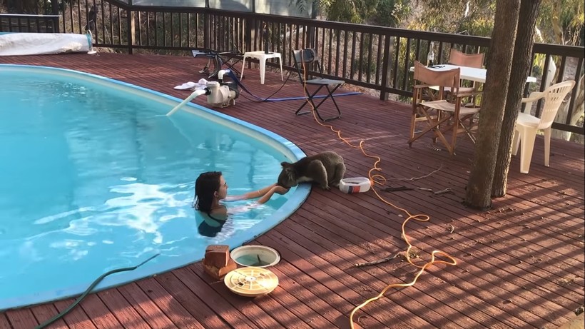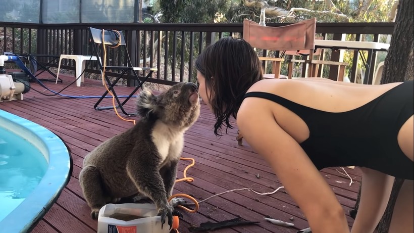 Дружелюбный нрав и необыкновенные повадки в сочетании с миловидной внешностью делают коал любимчиками людей. Животные часто приходят к жилищу человека в поисках питьевой воды, особенно в периоды засухи. Авторы представленного ниже видео утверждают, что их гостья частенько проводила время на дереве рядом с бассейном, но в один из жарких дней она все же решила спуститься к людям для знакомства. Для коалы соорудили чашку для питья, но ей оказалась больше по душе вода из бассейна. Она смело пила из рук девушки прохладную пресную воду, обнюхивала ее лицо и даже не противилась поглаживаниям. После продолжительного общения с людьми зверь покинул территорию дома.