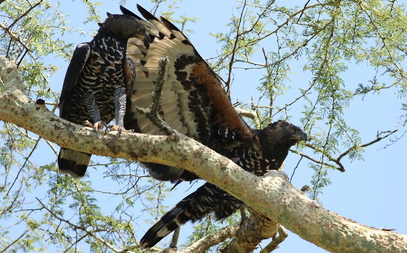 Антилопы в ужасе разбегаются врассыпную, а обезьяны замирают на ветках при виде этого орла. В африканском небе нет более опасной птицы, чем венценосный орел, который не побоится даже человека в случае опасности. Эта огромная и мощная птица способна поднять в воздух добычу, вес которой превышает ее собственный в 2-3 раза, а размах крыльев пернатого достигает 2 метров!