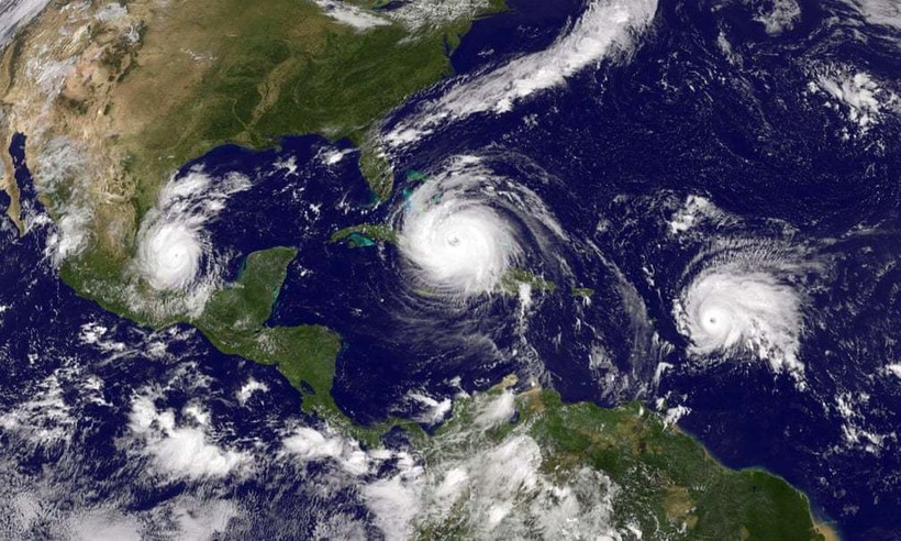 Ураган «Ирма» в Карибском море, шторм «Катя» в Мексиканском заливе и шторм «Хосе» в Атлантическом океане со спутника. Сентябрь, 2017 г.