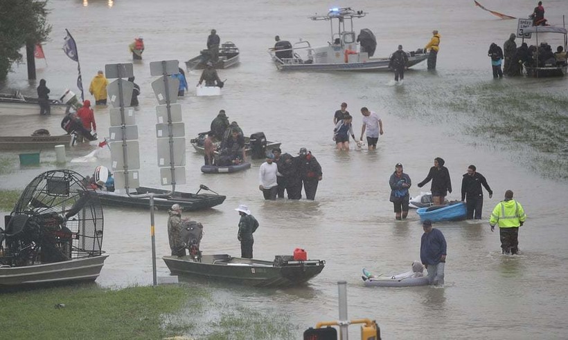 Люди пробираются по затопленной улице после урагана «Харви». Техас, США. Август, 2017 г.