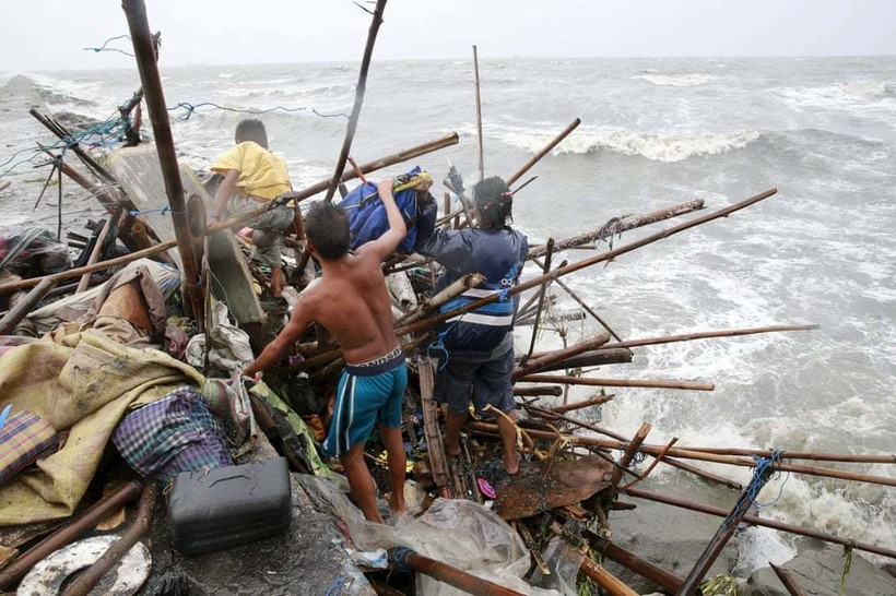 Филиппинская семья ищет свои вещи в бухте Манила, после того как их дом уничтожил тайфун «Ландо». Октябрь, 2015 г.