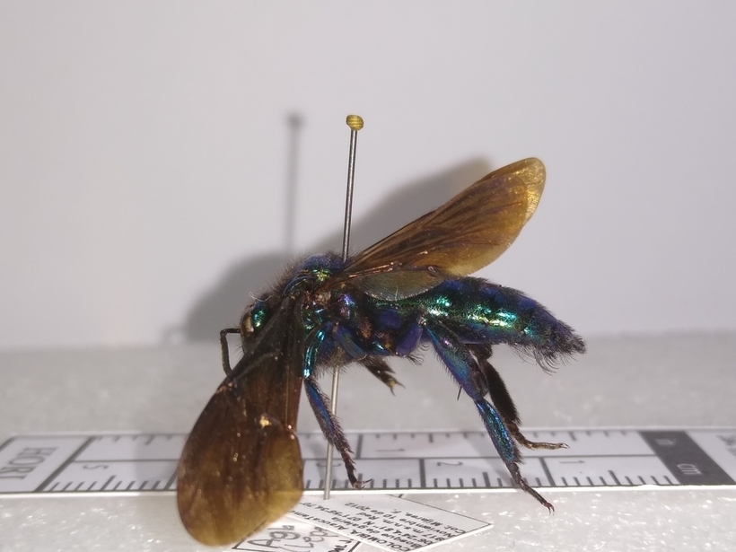 Веретенница и орхидная пчела Aglae coerulea