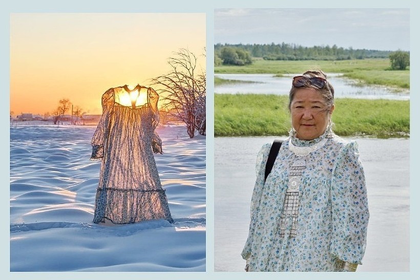 Именно это 62-летняя учительница и решила вспомнить — как в детстве ее мама всегда сушила белье на морозе. Она «заморозила» свое праздничное платье, а осуществить замысел ей помогала подруга.
