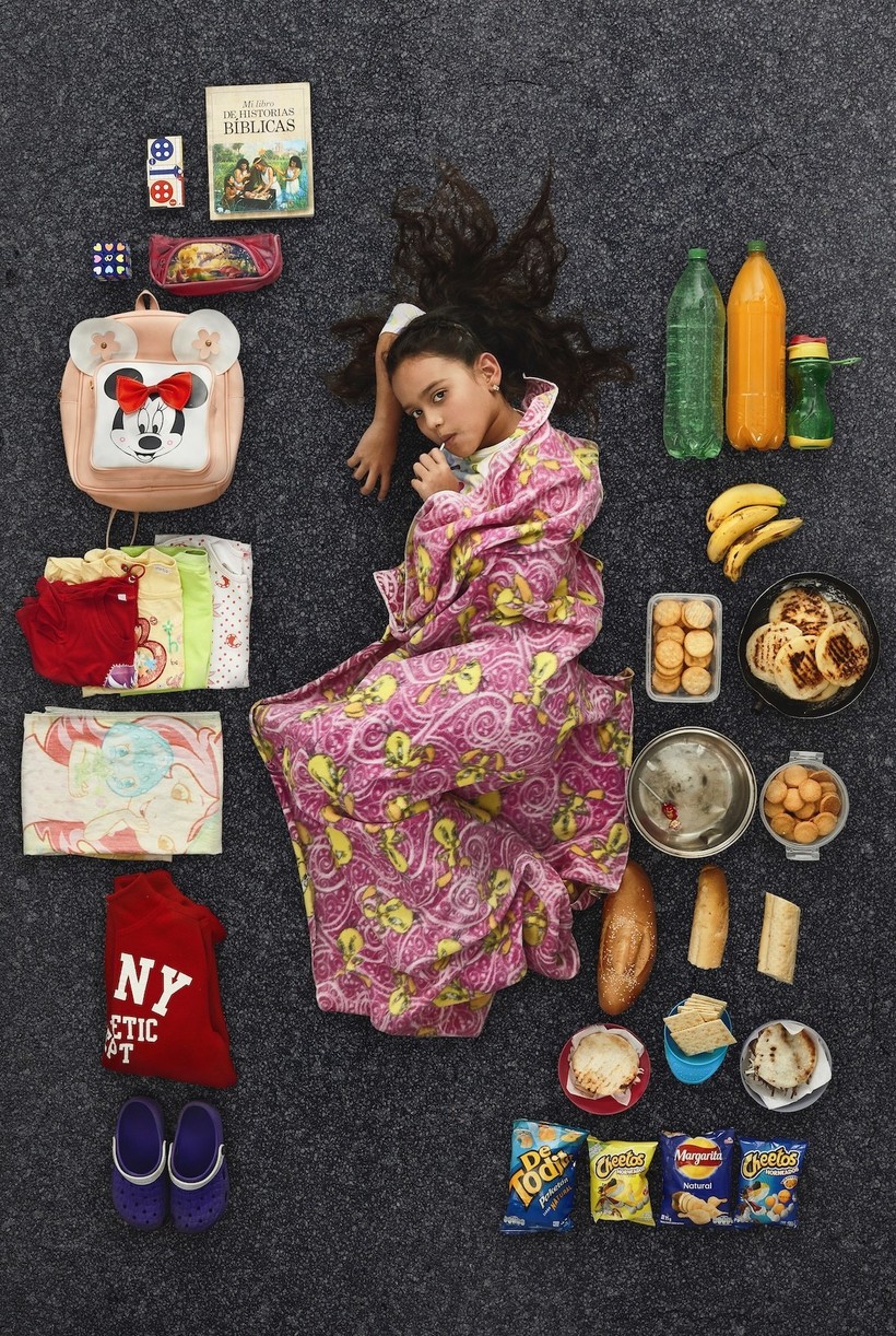 На снимках вокруг них разбросаны продукты питания из их обычного рациона и предметы того скромного имущества, которые они смогли забрать из своих домов с собой в дорогу. Многие из этих семей с трудом сводят концы с концами. Тем не менее они не оставляют надежды на лучшую жизнь.
