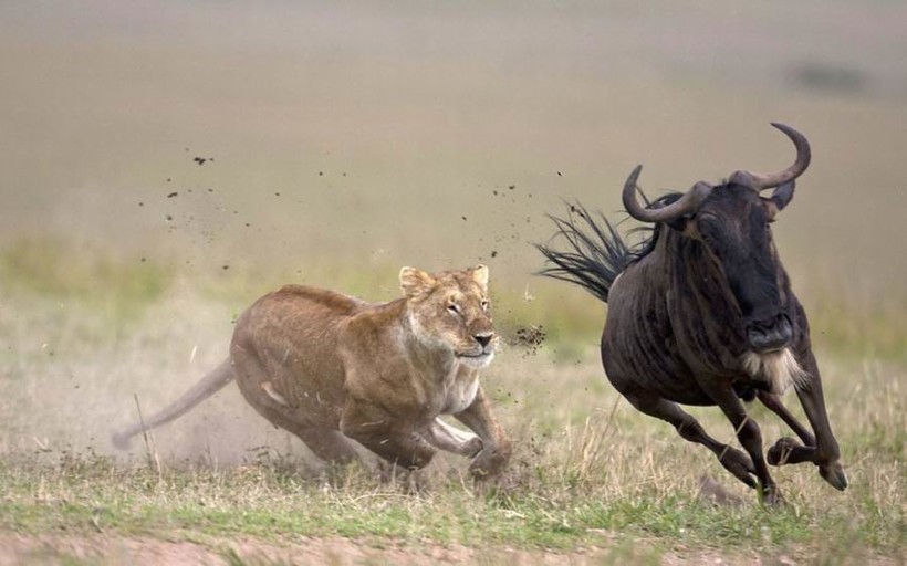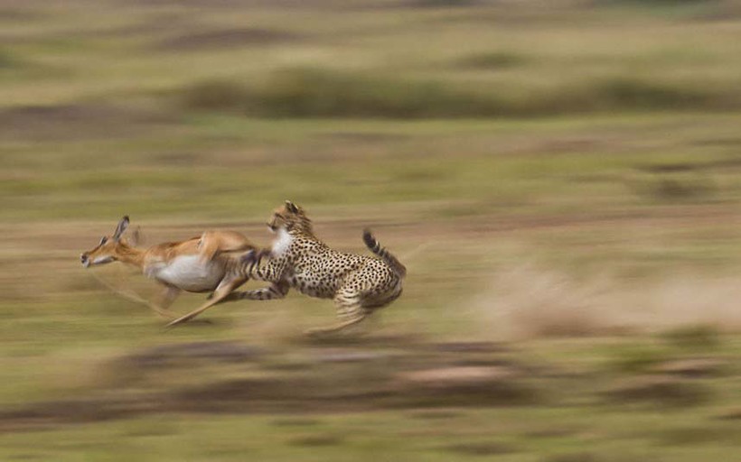 Гепард нападает на убегающую газель (Масаи-Мара)