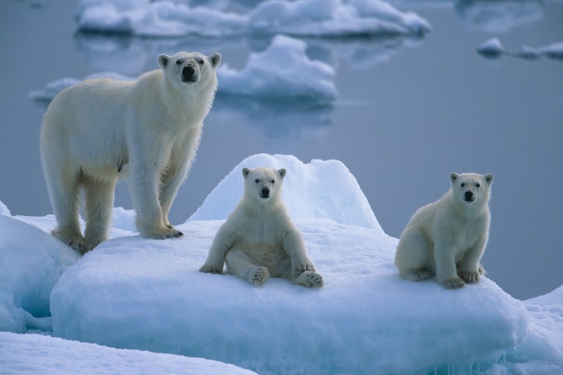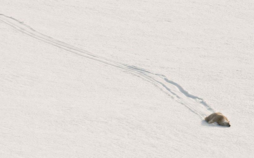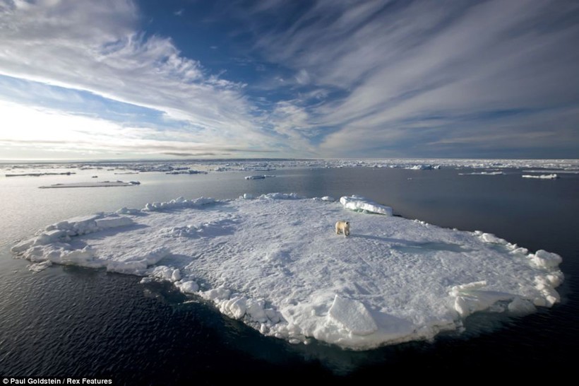 Арктический медведь, оказавшийся на дрейфующей льдине (Норвегия)
