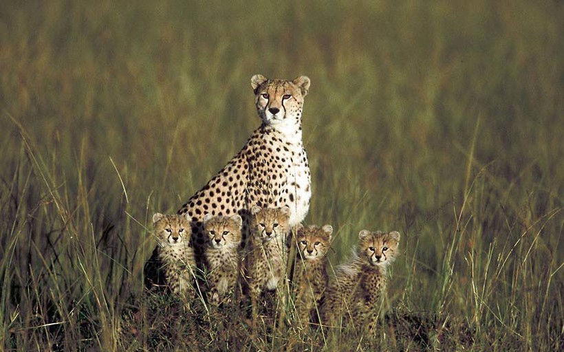 Детеныши леопарда все как один выстроились в ряд перед мамой
