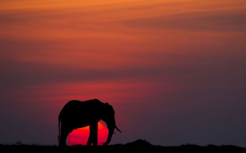 Слон на фоне заходящего солнца (Масаи-Мара)