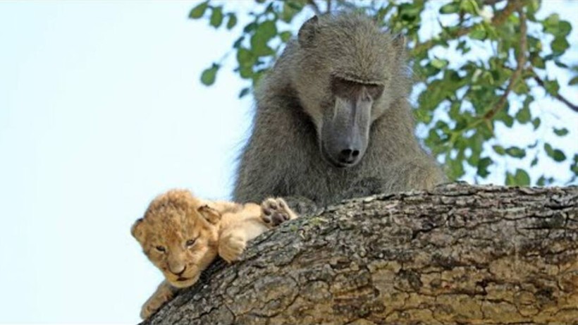 Мистер Шульц заметил стаю бабуинов. Приматы ходили вокруг маленького львенка. Курт был готов к тому, что обезьяны накинутся на малыша и расправятся с ним. За 20 лет работы в Южной Африке он видел такое не раз. Но тут случилось кое-что неожиданное. Один из самцов подбежал к львенку, схватил его и забрался с ним на дерево. Примат сделал еще несколько прыжков, чтобы подняться выше. Курт и его группа переживали, как бы львенок не выпал из лап бабуина и не разбился. В итоге обезьяна села с малышом на ветку и начала поглаживать его, словно своего малыша. Курт отмечает, что иногда самцы ухаживают за чужими детенышами. К сожалению, неизвестно, хорошо ли закончилась история маленького хищника.
