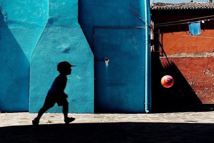 Бурано на его фотографиях живет обычной жизнью, и даже сложно представить, что здесь вообще толпы: школьники так же играют в футбол, взрослые люди куда-то спешат, а отцы помогают разобраться своим детям во всех сложностях окружающего мира.