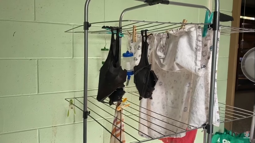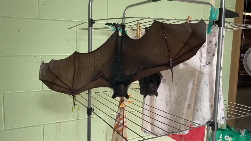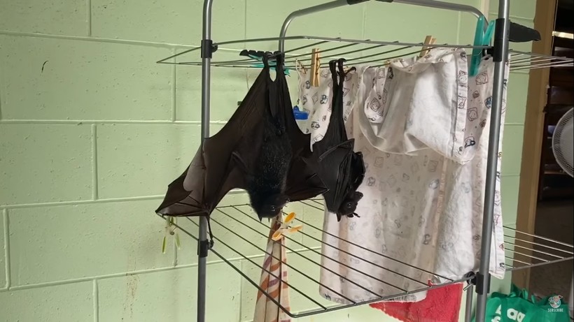Автор ролика, к примеру, застал парочку маленьких крыланов прямо на сушилке для белья. Раскинув широко крылья, одна из особей принялась издавать устрашающие звуки в попытке отогнать человека. В австралийских домах, стоит заметить, такие незваные гости не редкость.