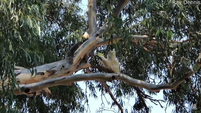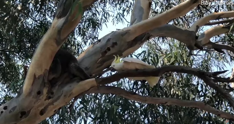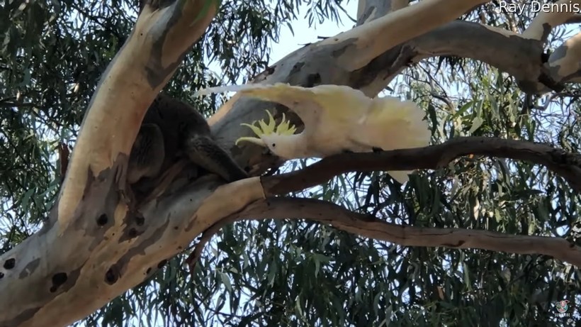 Житель Австралии Рэй Деннис рассказал интересную историю. Какаду, который живет на дереве напротив дома мужчины, оказал сопротивление коале, посягнувшей на имущество попугая. Птица долго и протяжно «высказывала» свое недовольство нахальному гостю. Она пронзительно кричала, распускала крылья, топорщила перья и даже хотела клюнуть животное, но не решалась. В какой-то момент мохнатому зверьку надоел пронзительный крик какаду. Коала начала забираться выше, игнорируя вопли в спину. Птица преследовала животное, перелетая с места на место. Тем не менее, оценив неравные силы, попугай сдался и занял нижние ветки.