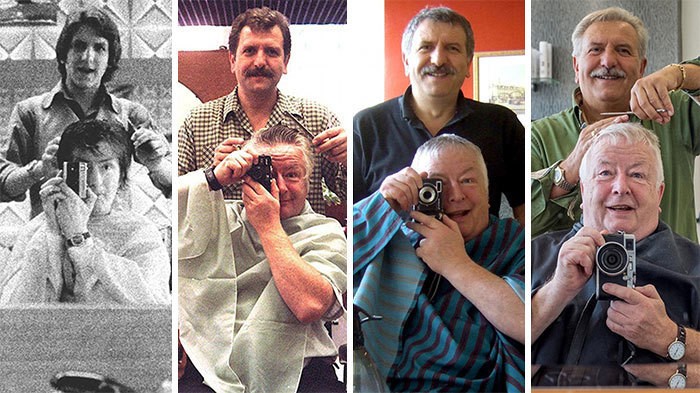 Согласитесь, есть особая магия в том, когда мы пользуемся услугами одного и того же человека на протяжении многих лет. Будь то хороший повар, флорист или просто продавец книг или мяса. Возвращаясь к нему снова и снова, мы словно обмениваемся частичками друг друга. Особенно это важно для парикмахеров: ведь хочется найти своего мастера навсегда, который будет не просто подстригать, а чувствовать вас и всегда попадать в точку. Именно так случилось с Сэмом Фарром, который когда-то жил в английском городке Бат: с 1970-х годов он ходит к одному парикмахеру Джо Пейсу. За эти десятилетия они стали настоящими друзьями и даже бывают друг у друга в гостях. А еще у Сэма и Джо есть интересная традиция: клиент всегда берет с собой фотоаппарат, чтобы запечатлеть работу мастера. Посмотрите на эти снимки, которые разделяет пропасть в десятки лет.