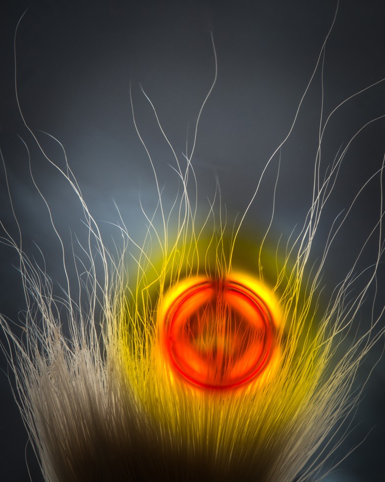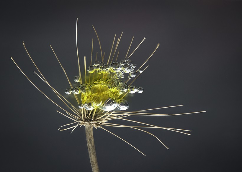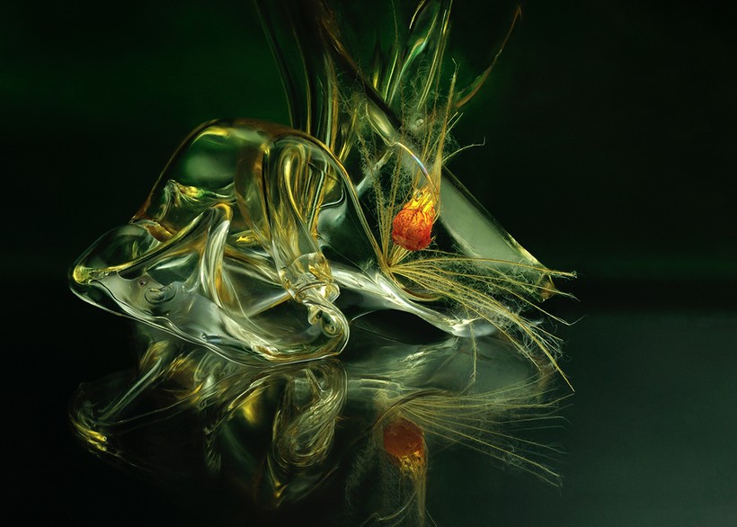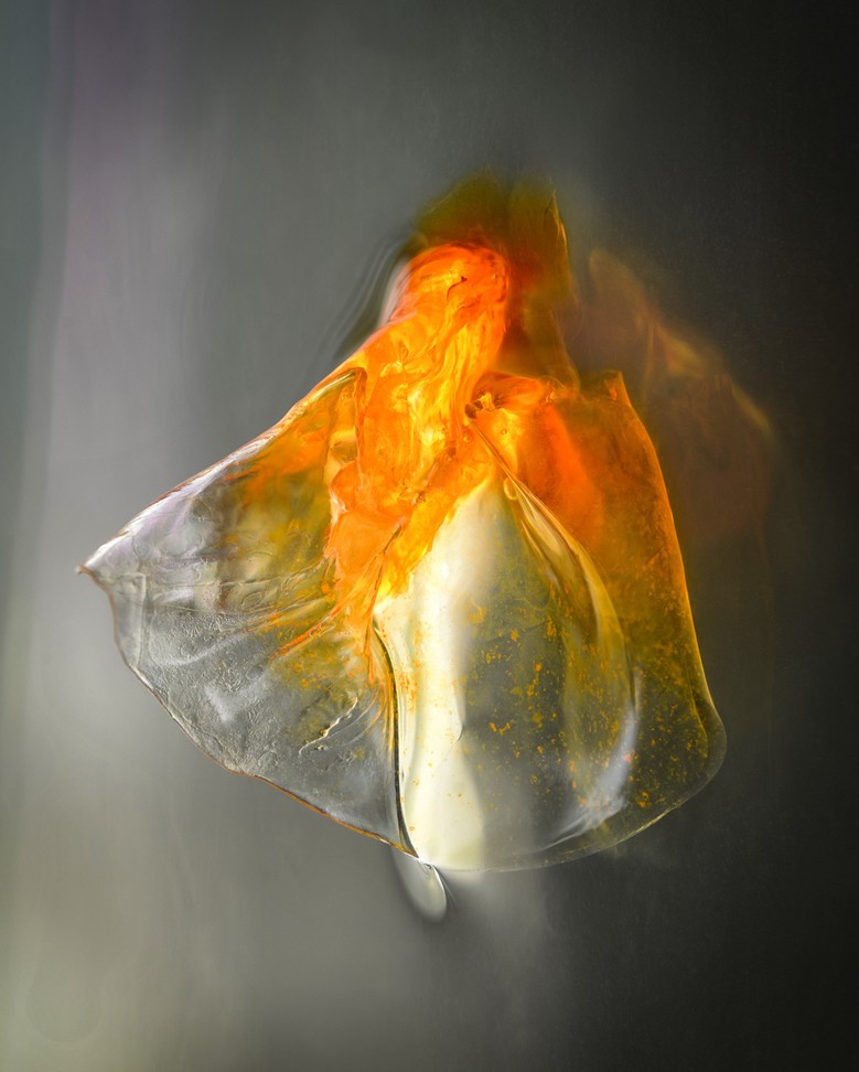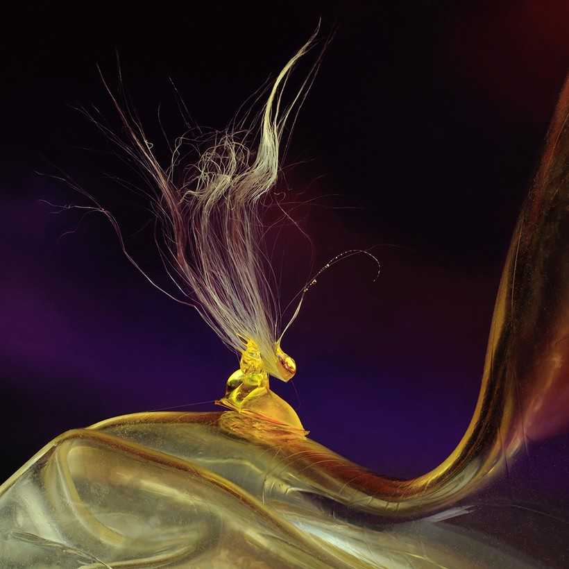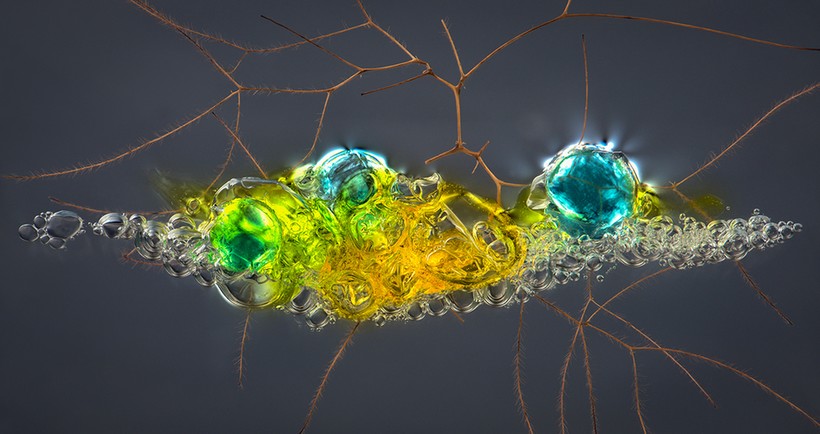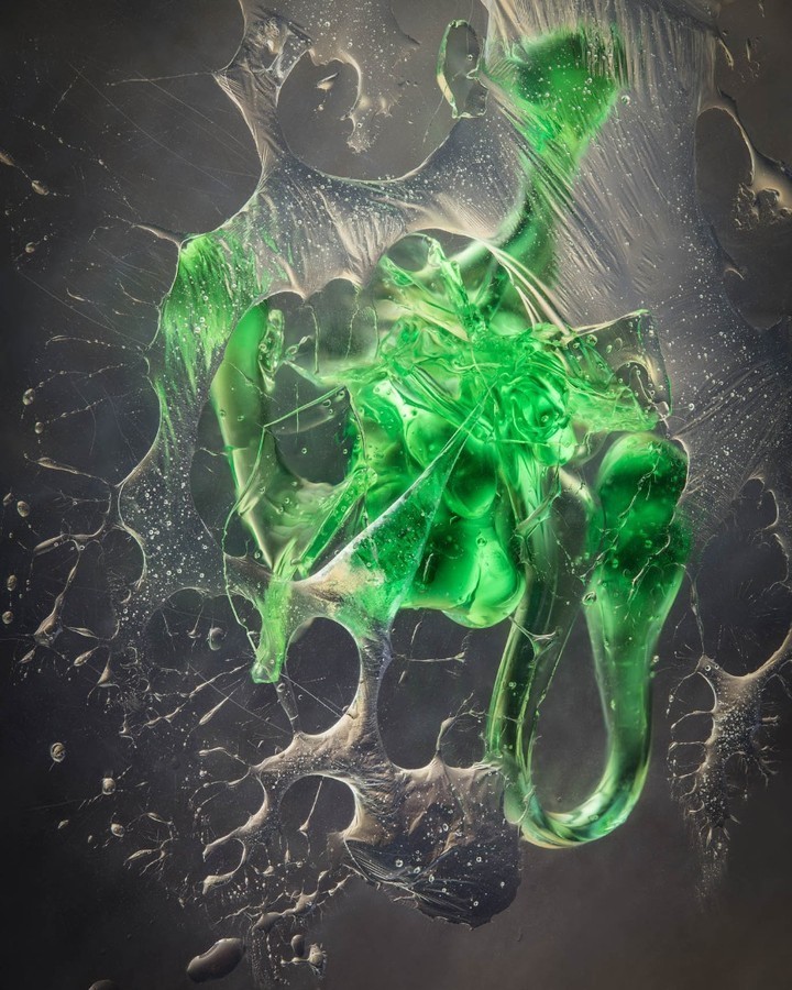 Биохимик создает небольшие биоморфные структуры из полупрозрачных органических гелей и манипулирует ими, чтобы развить материальный стресс. С помощью поляризующих фильтров и правильного освещения ученой удается запечатлеть свои творения во всей красе. На ее снимках можно увидеть великолепные миры, населенные потусторонней жизнью. Эти изображения отражают внушающую страх вселенскую жизненную силу.