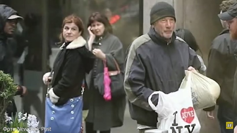 В эти дни снимался фильм Орена Мовермана «С незапамятных времен». В нем снимался звезда Голливуда, 64-летний Ричард Гир. Он играл несчастного человека, который волею судьбы был вынужден оказаться на улице и нести свое тяжелое бремя, пытаясь выжить в этом сложном мире. В тот день у актера были съемки на вокзале с эпизодом, как он ищет еду в мусорных контейнерах. Когда к нему подошла Карин с пакетом, актер сначала не понял, что происходит, потому что действие было не по сценарию. Но когда он догадался, что женщина не узнала его в гриме и случайно забрела на съемочную площадку, то решил не разочаровывать и не смущать ее. Он взял пакет и поблагодарил даму. Актер был искренне тронут, что на свете есть такие неравнодушные люди.