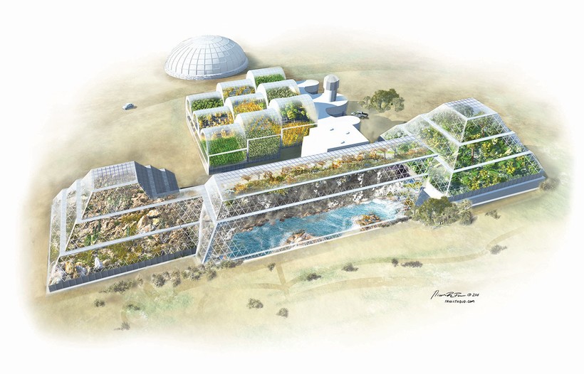 Масштабы купола были поразительны — своего рода планета на планете. Там находились целые плантации коз, свинарники, курятники, искусственные водоемы с рыбой. Предполагалось, что комплекс будет работать автономно, так как налицо были все нормальные условия для круговорота веществ. Но ученые просчитали не все. В итоге еды и воздуха не хватало, так как насекомые размножались и потребляли много кислорода, уничтожая растения. Ученым поставляли воздух и еду. Отношения между людьми были агрессивными. Этот эксперимент провалился, но он доказал, что как бы ни старался человек воспроизвести мир, у него ничего не получится, потому что наша экосистема очень хрупкая и зависит от многих факторов.