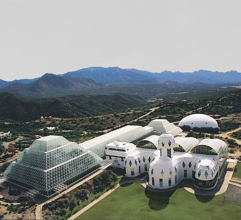 В 1985 году в пустыне Сонора стартовала стройка огромного сооружения, которое по своему виду напоминало гигантский стеклянный купол. Его назвали «Биосферой-2», так как первой биосферой была сама планета. Ученые собирались проверить выживаемость растений и организмов в искусственно созданной экосистеме, потому что купол был герметичным. Его разделили на три основные зоны. В первой было сымитировано 5 экологических аналогов: лес, океан, пустыня, саванна и болота. Вторая зона отводилась для растений: здесь высадили тысячи видов. Третья зона была местом обитания ученых, которые жили бы там и наблюдали за биосферой в течение определенного времени. Каждому человеку выделялось по 33 квадратных метра. Все зоны были разделены между собой легкими материалами и покрыты стеклянным колпаком, пропускавшим ультрафиолет.