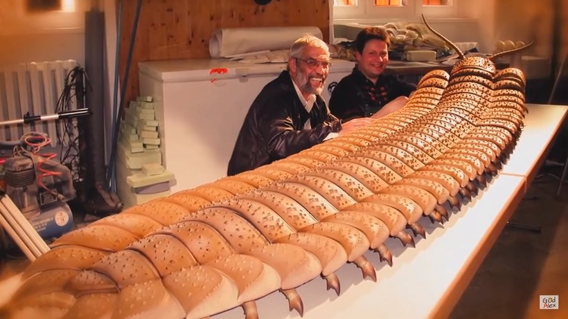 Гигантская многоножка, или артроплевра. Она жила на Земле 300 млн лет назад и была самым большим сухопутным членистоногим за всю историю планеты. Она могла достигать 2,5 м в длину из-за влажного климата и высокого уровня кислорода. Как и у любой другой многоножки, ее экзоскелет был покрыт хитиновой оболочкой, у нее имелось целых 60 ног. Это было сильное и быстрое существо.