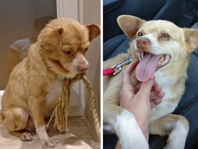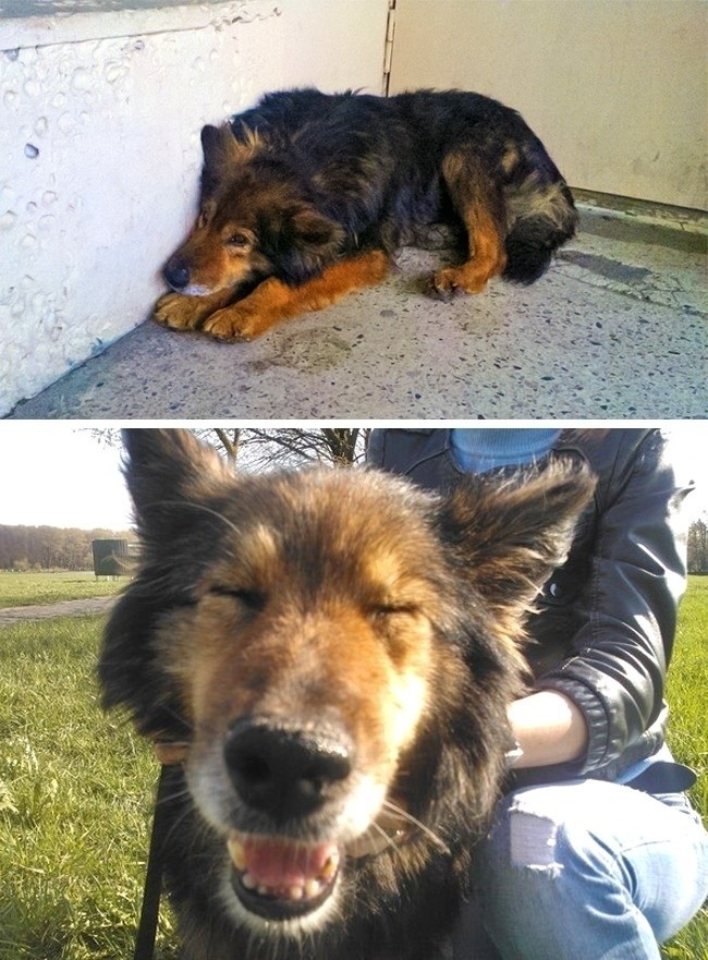 Животные, которые оказались на улице, а потом долгое время жили в приюте, одни из самых несчастных существ в мире. Иногда их жизнь на этом и заканчивается: так, некоторых бездомных собак намеренно усыпляют. Например, в США есть печальная статистика: ежегодно в приютах эвтаназии подвергают около четырех миллионов кошек и собак. Они просто не дождались того человека, который сможет их забрать домой. Однако если все же таким бродяжкам удастся найти хозяина, поверьте, это будут самые счастливые и благодарные животные в мире. Более того, они даже изменятся внешне. Не верите? Тогда посмотрите на фотографии этих собак и на то, как встреча с хозяином разделила их жизнь на «до» и «после». На первых фото ― это забитые и замученные животные, а на последних совершенно другая картина — их радости, кажется, нет предела. А какие положительные эмоции могут подарить эти потеряшки, известно только тем, кто решил испытать счастье на себе и спасти от одиночества такое вот четвероногое чудо.