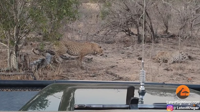 «Первоначально мы с друзьями испытали восторг, увидев двух взрослых леопардов в одном месте, но потом стало довольно смешно, — начал свой рассказ Питер, — леопард увидел спящую самку и стал подкрадываться к ней. Он шел осторожно, тихо ступая на сухие ветки. По мере его приближения наше беспокойство росло, ведь самка ничего не подозревала. Сначала было не совсем ясно, интересует ли его кошка ради продолжения рода или же леопарда привлек запах добычи в виде оленя. Когда самец был в паре метров, самка услышала его, резко вскочила и бросилась бежать, скрывшись в зарослях».