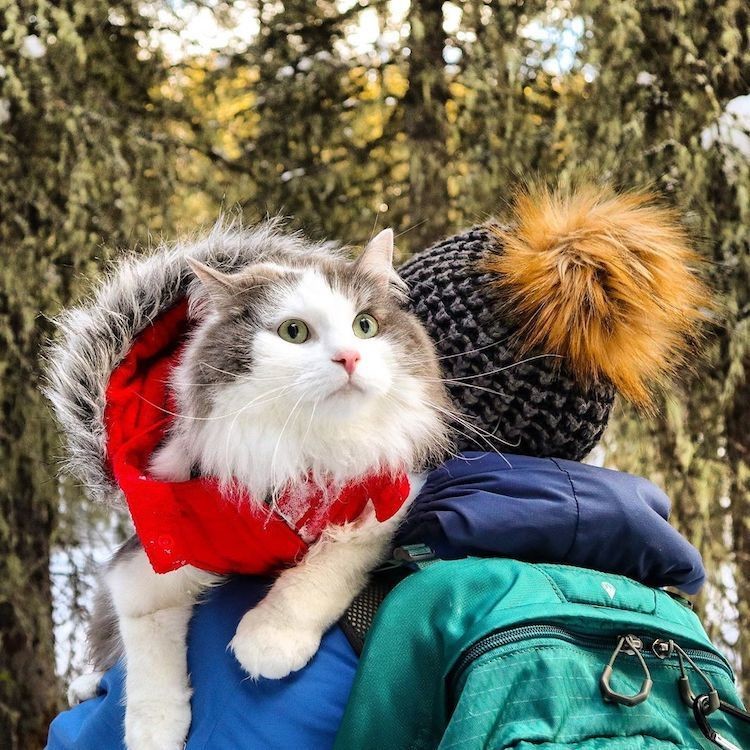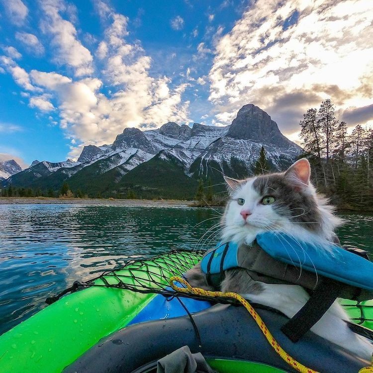 Кошки в большинстве своем еще те лентяи. Они, как никто, любят разлечься на диване или подремать на батарее зимой. Тем не менее, как вы поймете из сегодняшнего материала, в этом правиле тоже бывают исключения. Познакомьтесь с котом по имени Гэри, пятилетним спасателем, обладающим необыкновенной тягой к приключениям. Он всегда с восторгом и энтузиазмом принимает очередной вызов и отправляется в походы в канадские скалистые горы вместе со своим владельцем и коллегами-собаками. Аккаунт Гэри в Инстаграм весьма популярен, здесь он то и дело появляется в новых стильных образах, позируя рядом с великолепными озерами, скользя по ослепительно белому снегу или прижимаясь к рюкзаку своего хозяина.