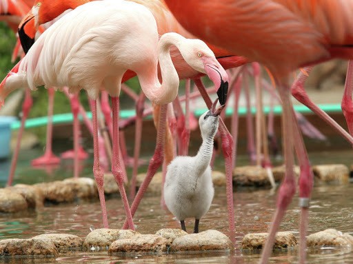 Однако в действительности ничего страшного в этом процессе нет (разве что не самый удачный ракурс). Дело в том, что фламинго, как и некоторые другие пернатые, кормят своих птенцов так называемым птичьим молоком, однако оно не привычного белого цвета, а розовое или даже красное. Эта жидкость по своим свойствам сравнима с молоком млекопитающих. Именно благодаря ей малыши очень быстро набирают вес, хорошо растут и уже через пару месяцев становятся способны сами добывать для себя пищу.