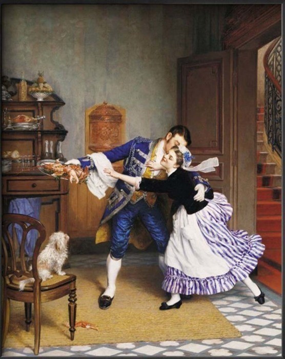 Конечно, при таком подходе нельзя было избежать романов между лакеями и их хозяйками. Известна история виконта Лигонье Клонмеллского. Тот застал свою жену в объятиях итальянского графа Витторио Альфьери. Виконт вызвал графа на дуэль, они сошлись в честном поединке. Но леди Лигонье, ветреная красотка, бросила обоих, сбежав с лакеем. Про графа и виконта еще долго сочиняли скабрезные стихи.