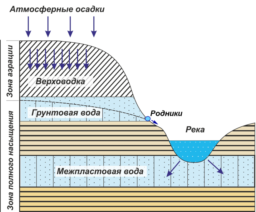 Зачастую реки имеют несколько источников питания. Водные артерии, протянувшиеся в зоне умеренного климата, пополняют запасы воды за счет талых ледниковых вод и снега. По этой причине максимальный уровень воды в таких реках наблюдается весной и в начале лета. Затем снеговое питание дополняется дождевым. Реки берут влагу из грунтовых вод, куда она попадает во время летних дождей. Капли дождя, проникая в грунт, просачиваются в нижние горизонты и стекают вниз, пока не достигнут водоупорного слоя, а затем вода ищет выход на поверхность. Так образуются родники, которые питают ручьи и небольшие речки, несущие свои воды к более крупным рекам.