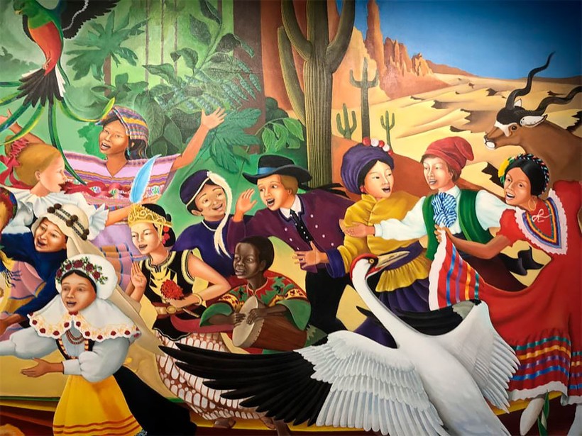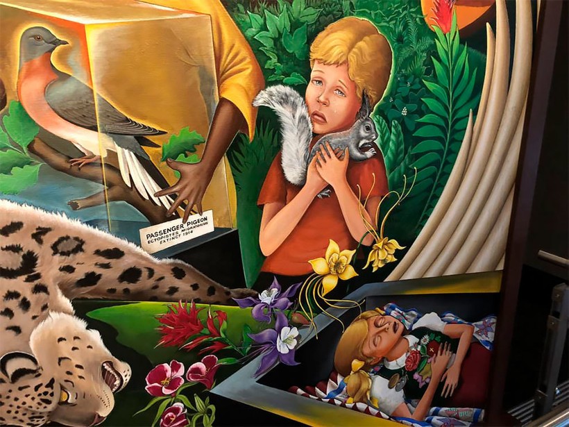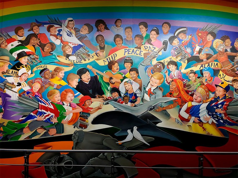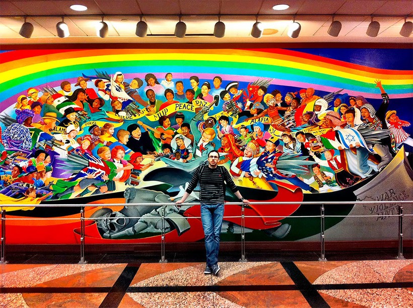 Эти муралы авторства Лео Тангумы, озаглавленные «В мире и гармонии с природой» многие годы вызывают недоумение и весьма неоднозначную реакцию путешествующих, оказавшихся в международном аэропорту Денвера. Некоторые туристы чувствуют себя оскорбленными подобными картинами, другие считают, что это творение находится в самом сердце теории заговора, которая уже давно вращается вокруг этого воздушного порта и иллюминатов.