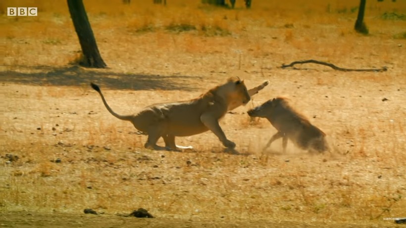 Оба зверя боятся напасть первыми и лишь пугают друг друга, чем привлекают внимание сурикатов, которые вылезли из укрытия и следят за потасовкой. В конце концов львица не рискует нападать на кабана, и тот начинает гнать хищницу в сторону. Она принимает поражение и ложится отдыхать. Ее котята голодны, пока еще они могут пить ее молоко, но малыши быстро растут, поэтому скоро молока не станет. Львица должна восстановить силы, чтобы продолжить охоту и обучение детей этому искусству, иначе у них не будет шанса выжить в этом мире.